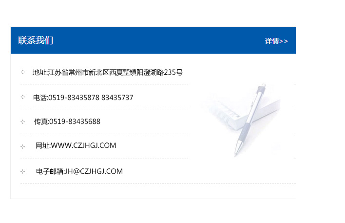地址:常州市新北區(qū)友邦商務(wù)大廈1幢16、17層  電話:0519-85101652  傳真:0519-85112595  郵編:213022  網(wǎng)址:www_cz-jiayue_cn.yscm6.com  郵箱:xiajifengaa@163.com
